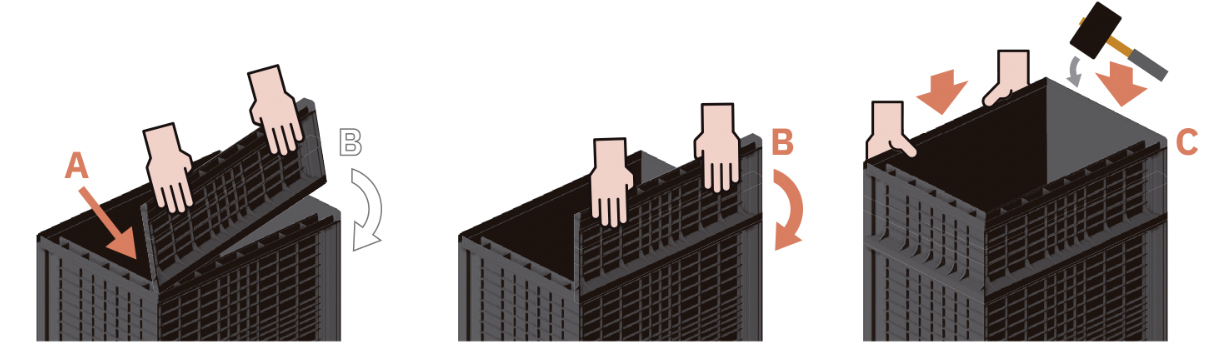 Recomendación Para facilitar el ensamblaje de las piezas entre sí, se recomienda rociar los costados de las piezas con desmoldeante con base en silicona o similar y golpear suavemente con un martillo de goma.